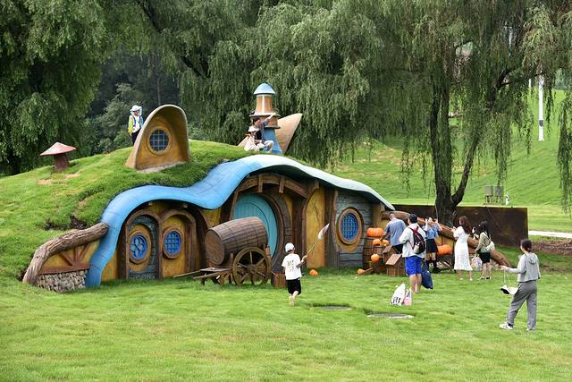 云端草原有很多小木屋,组成了牛仔小镇市集,每个小屋都有各自的特色,吸引我们一个个去探秘。草原上还有很多项目正在建设,可玩的越来越多。
