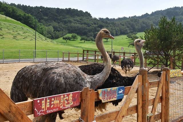 相比温顺可爱的小鹿,鸵鸟显得高傲得多,高挑的身材,扬起的脖子,对我们都是俯视的角度,吃起食物来是毫不客气。