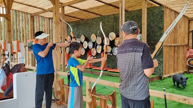 骑马射箭是草原的必备项目,骑过了小马,来到弓箭大作战,不仅考验技巧,更是磨炼耐心,一把箭射出去,才刚刚找到感觉,终于能做到不脱靶了。