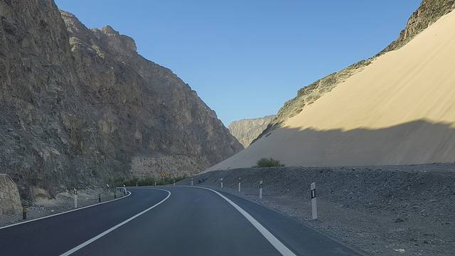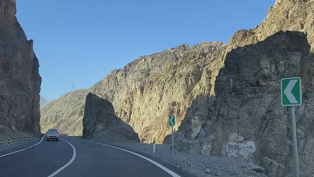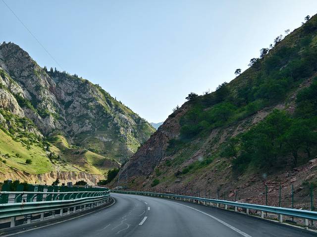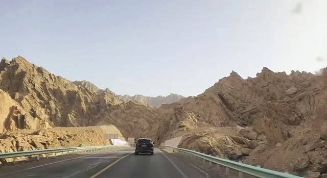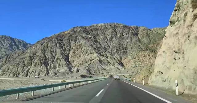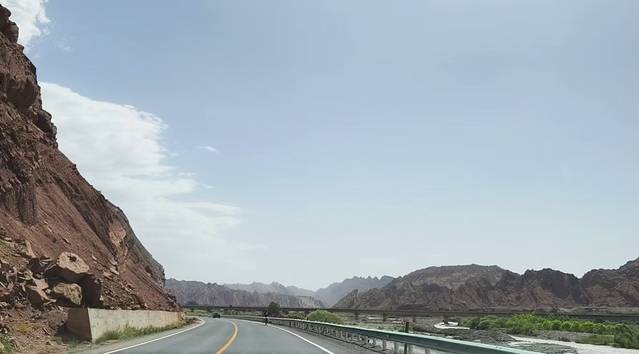 吐和高速这一段完全是在峡谷中穿行,道路两旁高高耸立的山峰给人强烈的压迫感