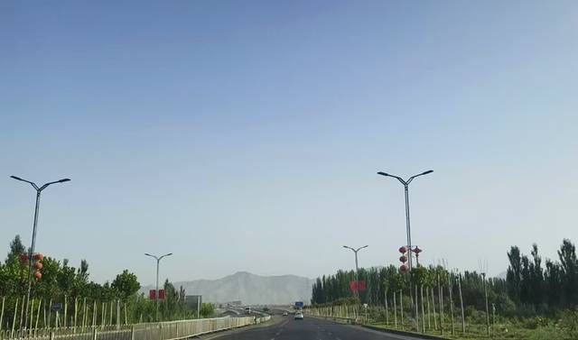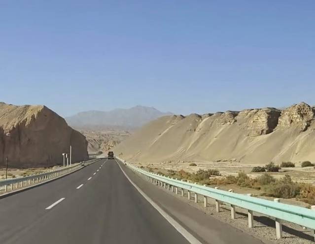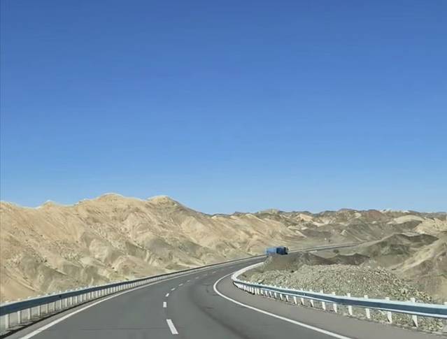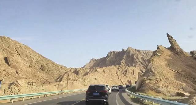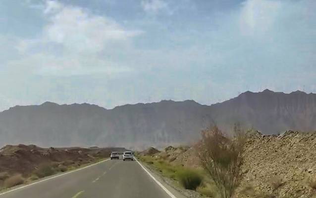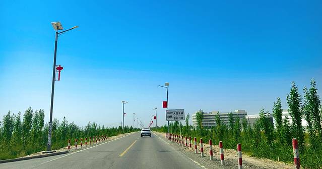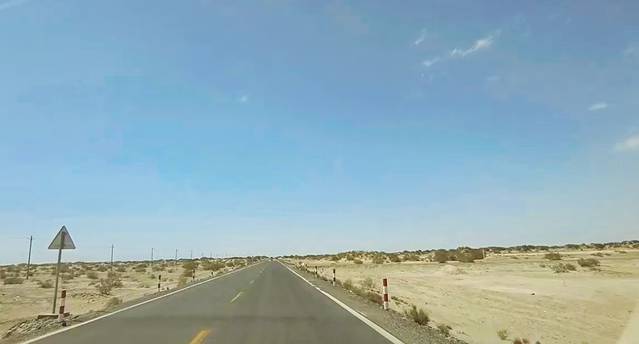经沙漠公路进入油田的内部道路,一路限速行驶,经过乡道180、148 两个半小时后到达库车。