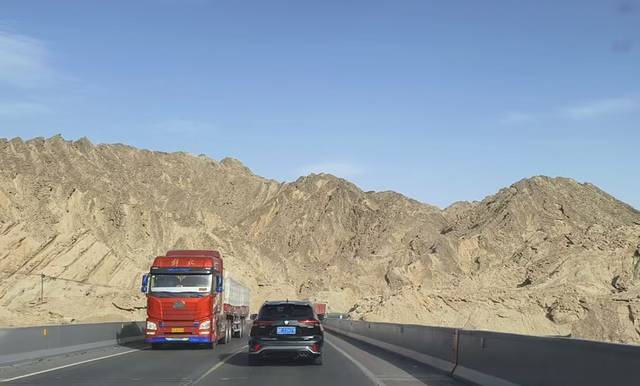 一路上的大车非常的多,不是说独库公路只能5座以下的车辆才能同行吗?没弄懂😮