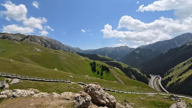从巴音布鲁克到那拉提这一段是独库公路的中段,全长61Km,穿越天山腹地,以草原和森林的美景著称。