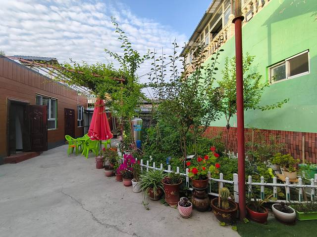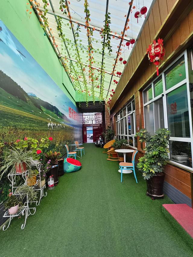 一个种满花草的小院,老板一家人非常的热情,爸妈和入住的游客也聊的非常开心。