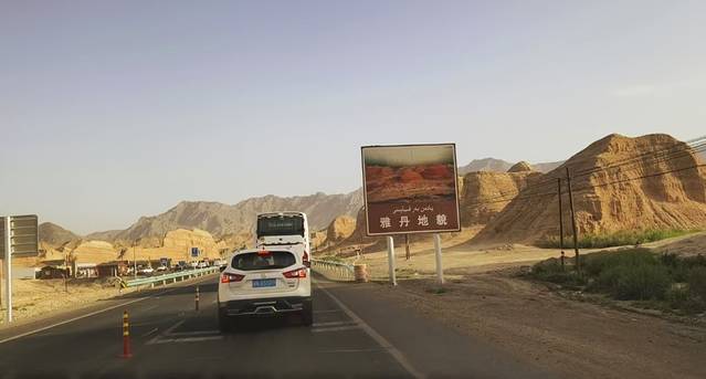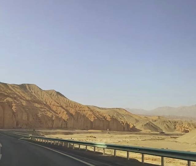 行进在塔里木盆地的边缘,路边开始出现雅丹地貌。