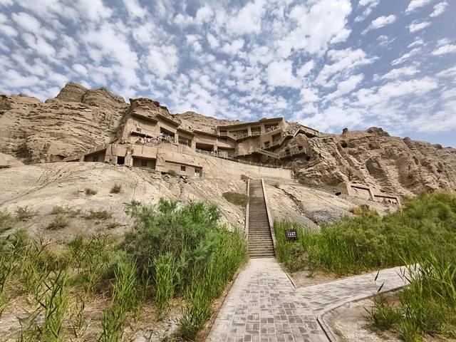 上到洞窟要爬一段长长的阶梯,爸妈腿脚不是太好,就座在广场上等我们