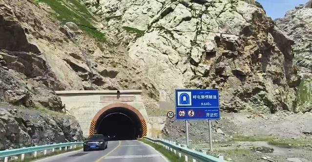 经过呼屯郭楞隧道,这也时独库公路南段的第一个隧道。