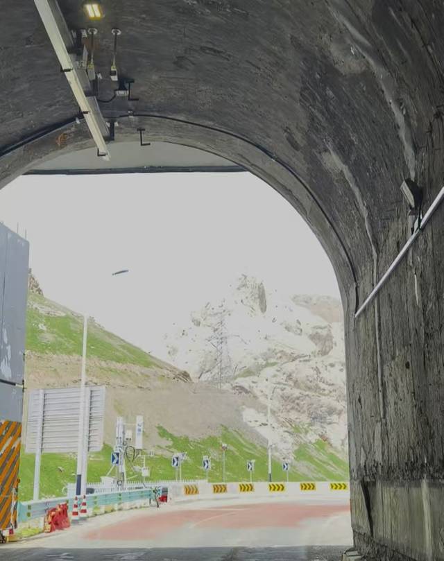 观景台的旁边就是盐水沟隧道,据说因山体看上去似有廊有柱, 有塔有亭, 楼阁错落,好似布达拉宫,所以被称为布达拉宫景观。