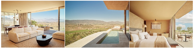 瓜达卢佩山谷悦榕维养轩由著名墨西哥建筑师Michel Rojkind设计,酒店建筑拥抱自然地势,无缝融入在瓜达卢佩山谷起伏的山丘之中,室内则由smArq Arquitectura事务所一手打造。置身于下加利福尼亚州群山之中,占地16英亩的瓜达卢佩山谷悦榕维养轩拥有30栋带私人泳池的别墅、丰富多元的养修体验以及植物园。不仅如此,酒店还拥有专门酿造歌海娜单酿葡萄酒的私人酒庄,以及数家致力于在瓜达卢佩山谷葡萄酒产区树立美食新标杆的卓越餐饮设施。