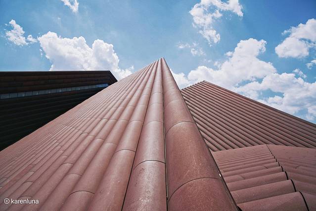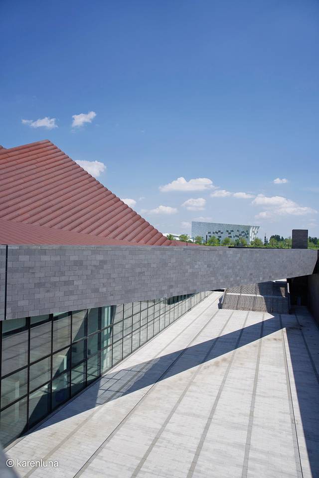 蓝天白云下的暗红尖角,简约又不失时尚,在这片承载着千年文化底蕴的古城之中,宛如一抹清新的风,成为了另一番令人瞩目的风景画。