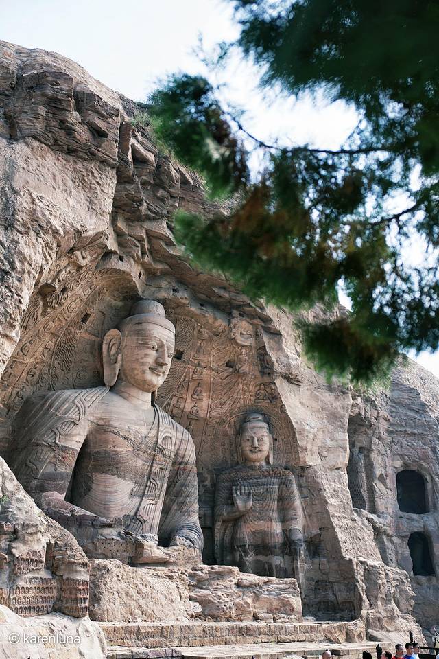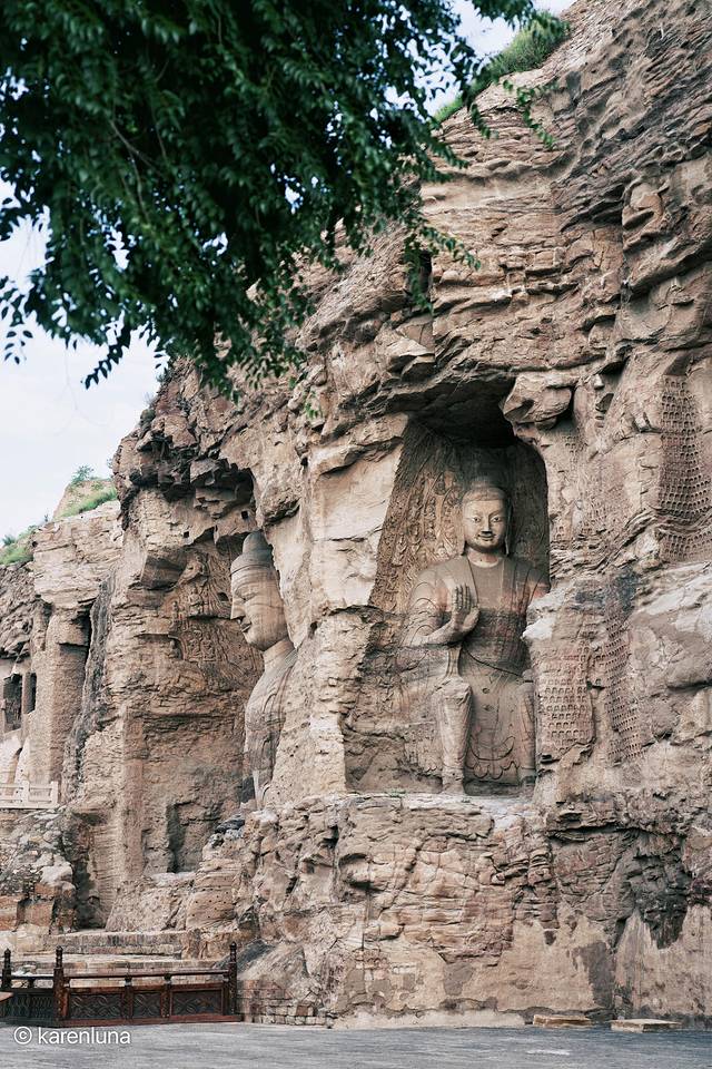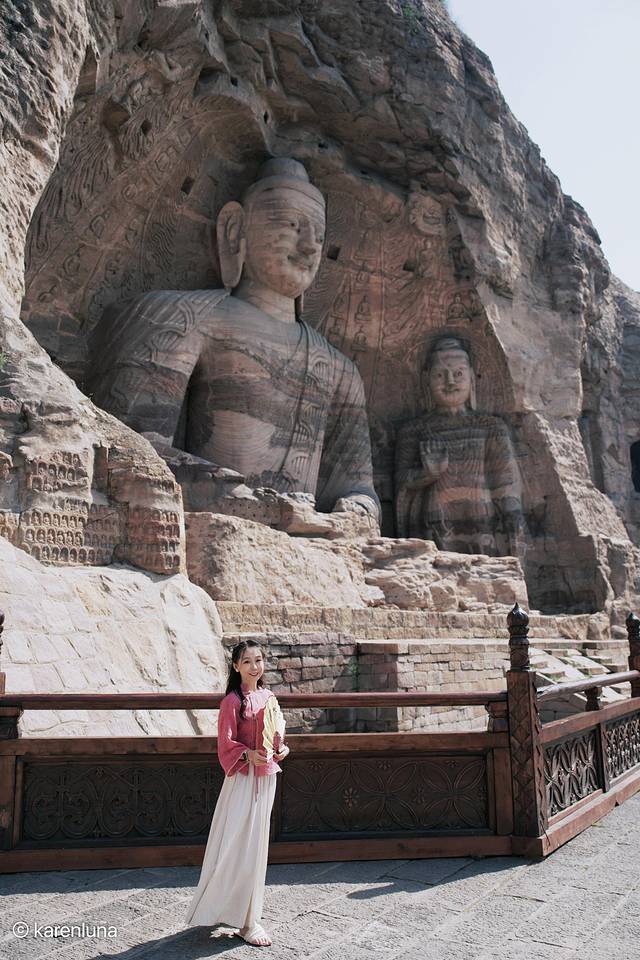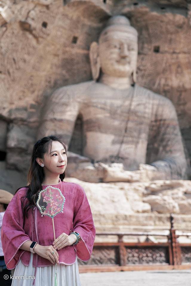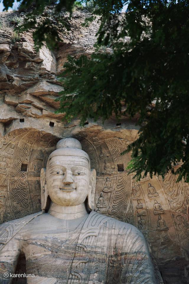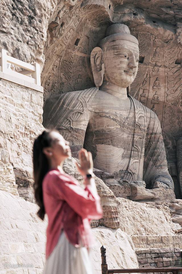 当来到云冈石窟这座与山同高的巨型佛像前,敬畏之心油然而生。双手合十默默闭上双眼,缥缈中,仿佛听见了历史的低语,悠悠然~