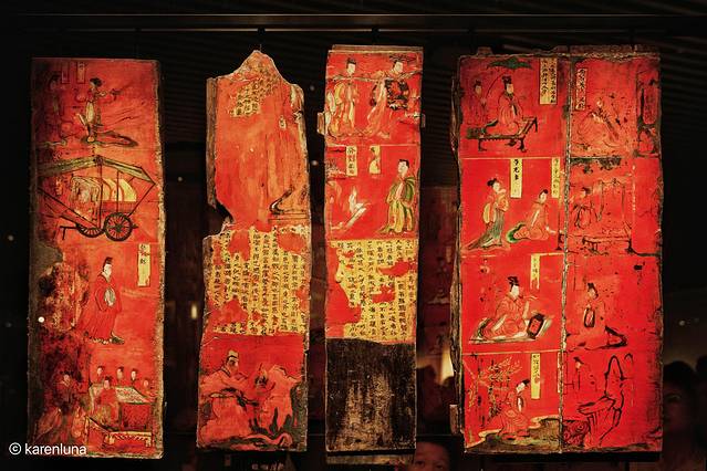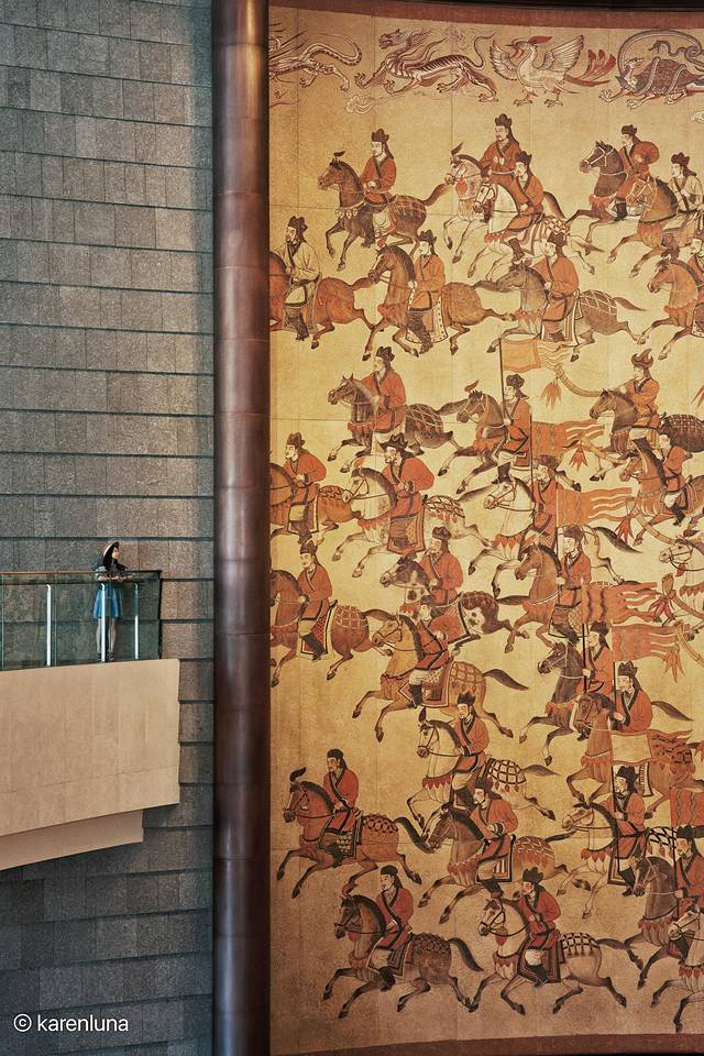 在我心目中分量最重的便是位于二层“魏都平城”展厅的北魏司马金龙墓漆画屏风。距今已1500年的木质漆画还能如此艳丽多彩,着实令人惊叹。木板上那每一笔彩绘蕴含着匠人的心血与时代的风韵。它不仅是首批被禁止出境的国宝,更是诉说着着往昔辉煌的艺术的瑰宝。