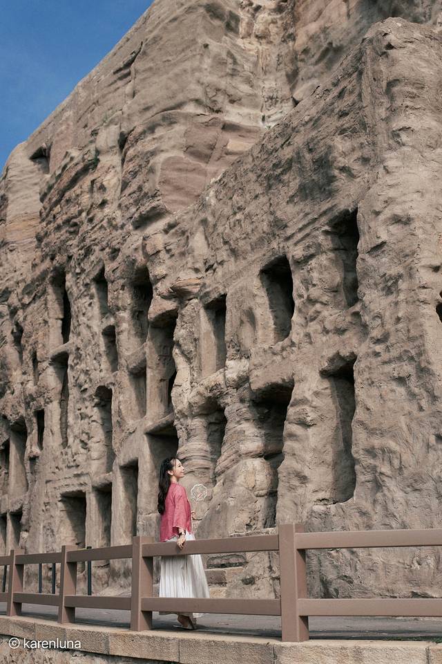 早上顶门入园搭乘摆渡车,为了拍摄到空无一人的人生美照,我们暂时舍弃距离景区大门较近的几个石窟,直奔最深处的20号巨型佛窟,从里往外逆向而行。这样安排最大的好处就是可以避开熙熙攘攘的人潮和各种举着小旗儿的旅行团,事实证明这样安排十分正确!