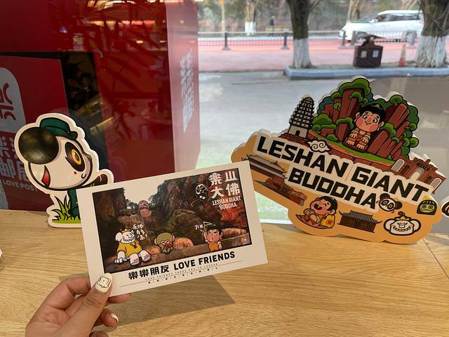 打车到“乐山大佛6号停车场”,走一段到北门,其实没什么坐观光车的必要。临进去前有家邮局,冰箱贴、明信片还有小礼物什么还都挺多,里面不怎么好看,推荐在这里搞定