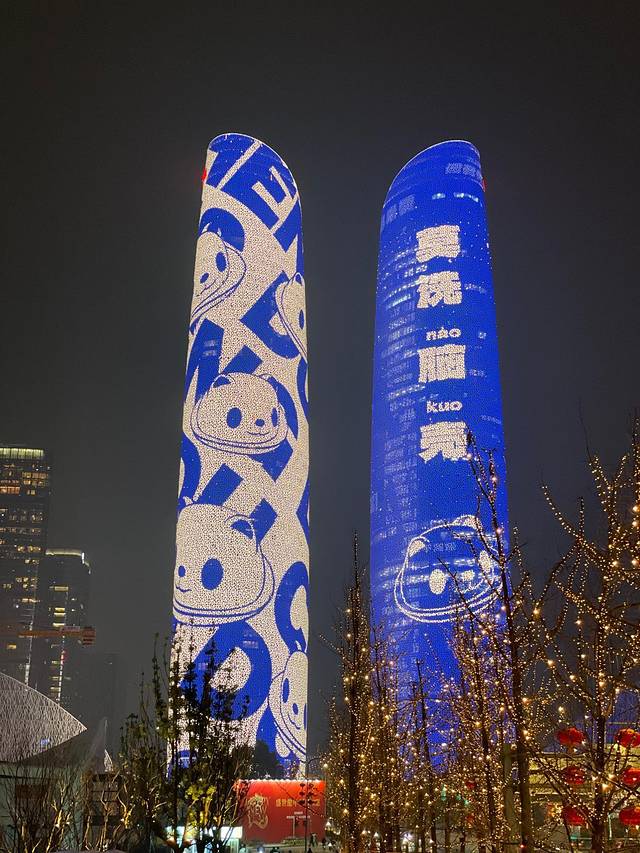 双子塔会变化颜色,轮播一些很有意思的方言,跟四川的朋友学了半天也没学明白哈哈哈