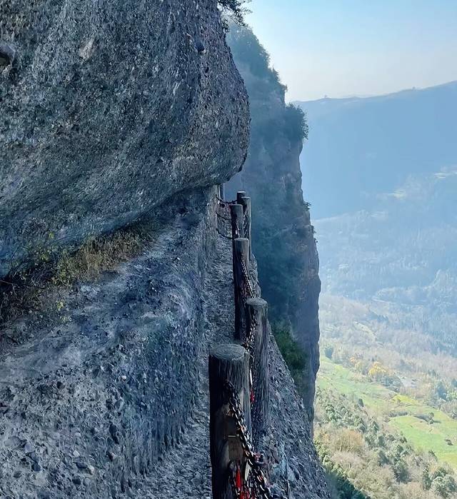 🐒猿猱道:相比鸟道,猿猱道更为惊险、刺激,上去必须穿戴攀岩🧗♀️安全装备,由专业教练带着,“Z”字型沿悬崖缝而上,攀岩道最宽处30厘米,最窄处仅约15厘米;这可是真正的绝壁行走,值得挑战哟!