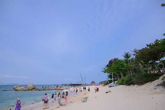 作为国家5A级景区的蜈支洲岛,又名情人岛,因地形宛如海洋生物“蜈支”而得名。这座岛屿海域无礁石混杂,沙滩细软如绸,被誉为“中国的马尔代夫”、“中国第一潜水基地”。岛上有情人桥、情人岛、观日岩等著名景点,散发着浓郁的三亚风情。在这里,游客们可以近距离感受李老师笔下的蜈支洲岛:海岸边山石嶙峋、海面碧波万顷、海水清澈见底,壮丽而纯净。