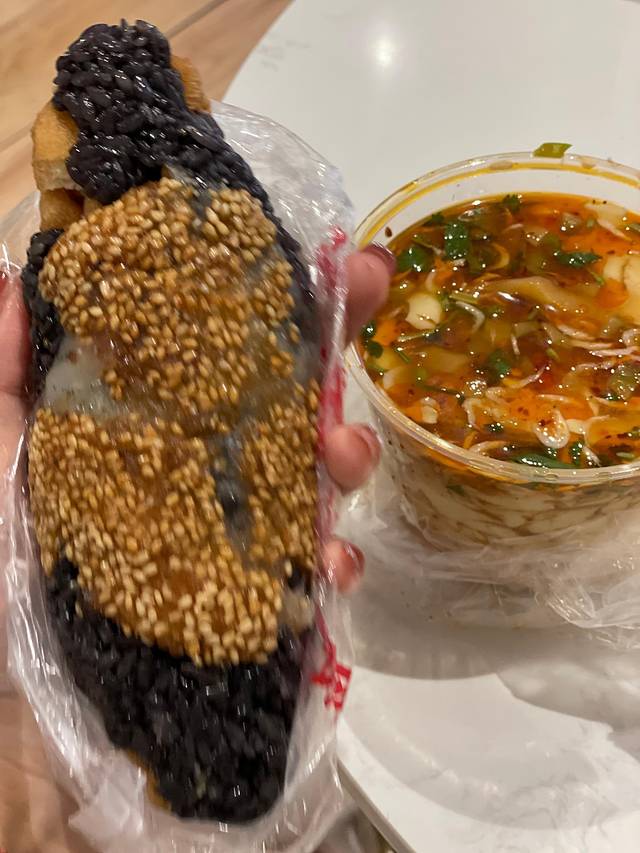 本着红山之旅前得扎扎实实吃饱的念头,点了麻团乌饭和豆腐脑,这个饭团真的巨好吃,特别特别扎实,扎实到我们吃到推迟了出发时间==南京的饭团麻团很多,不管哪家感受一下,去店里吃热乎的应该会更幸福!
