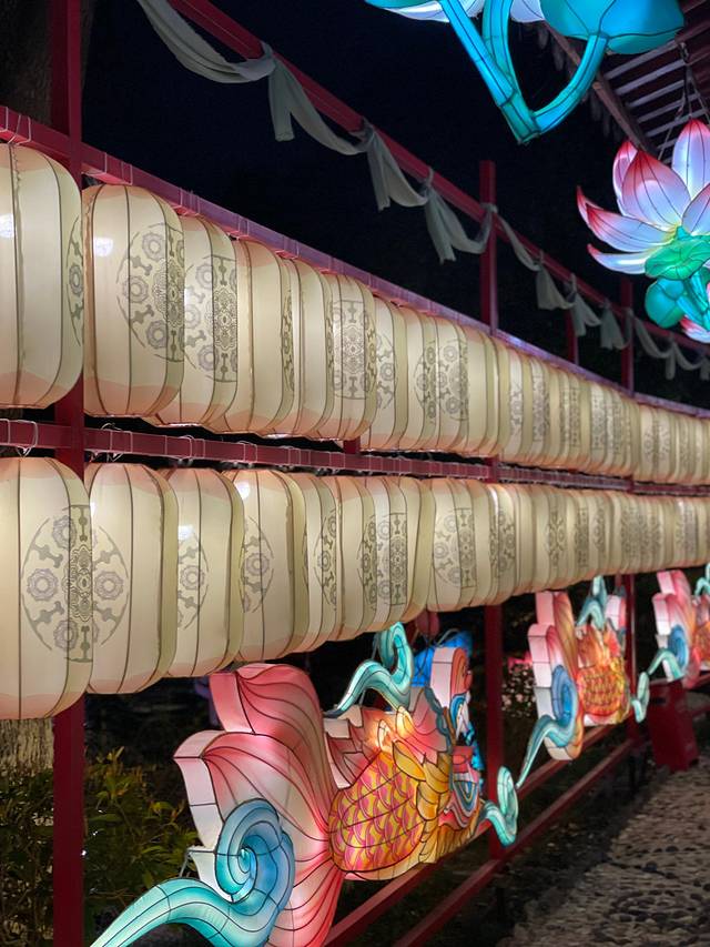 正好赶在元宵节的尾巴,所以还有美美的花灯,真的挺好看的!穿个古风中国风拍照应该也绝美,当然胃疼+血崩的我就没这个兴致了,顽强努力了半圈实在受不了了,草草离场。