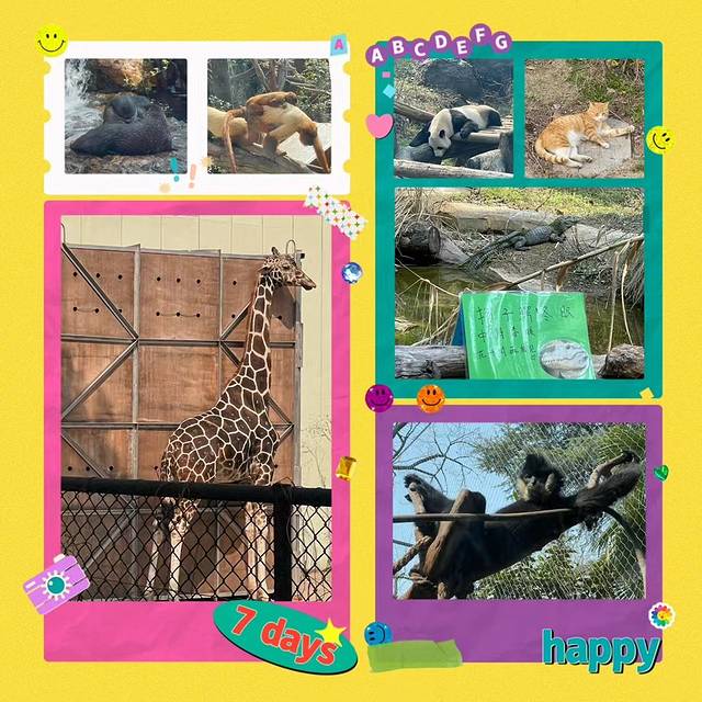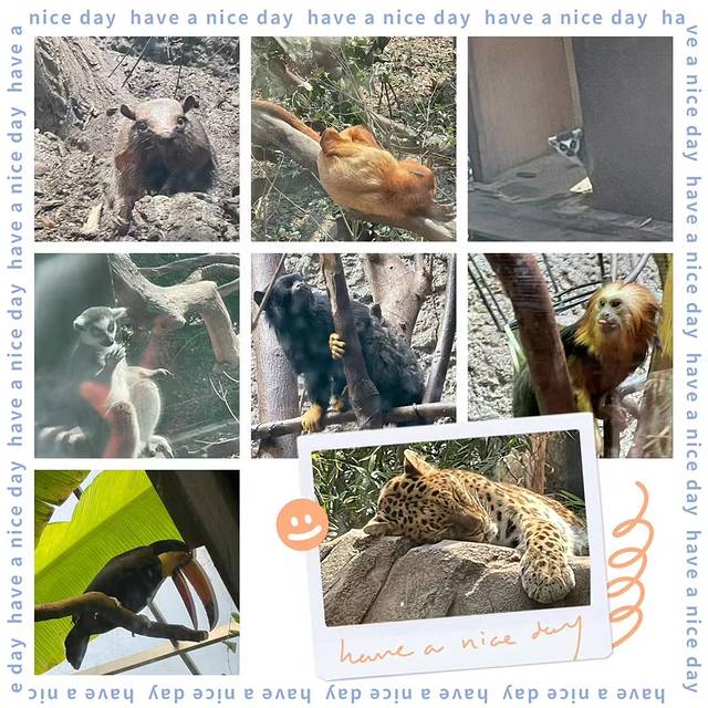 长颈鹿🦒—考拉🐨—冈瓦纳 猴 卡皮巴拉 男明星—大象🐘—犀牛🦏—高黎贡小熊猫—狼🐺—猫科区 狞猫 猞猁—豪猪—大熊猫🐼—鹈鹕等等,还有一些没记下,虽然慢慢悠悠佛系玩,但基本都走到了,有的还看了很久,其实不排队买东西,光看动物其实一天时间还是挺宽裕的。