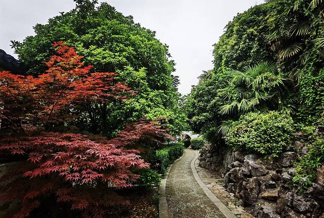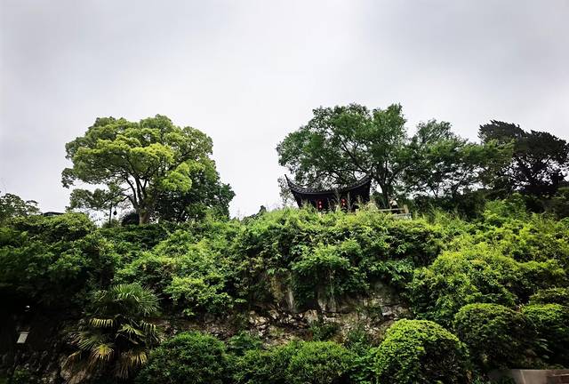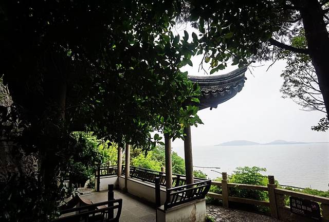 ①绝壁。来鹤亭下方的绝壁,高约20米,像是刀斩斧劈过一样,万岩千仞、壁立峭崖,在这里极目远眺,只见远山近水、鸥鸟翻飞,太湖美景尽收眼底,这里的飞檐与峭石、亭台与断崖、光影与婆娑,交织入画、相得益彰。