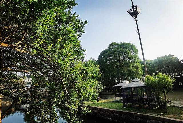 一看菜单,我们愣了一下子、然后乐了!愣了一下子的原因,是因为菜肴价格竟然比景区外的农家乐来的低,颠覆了景区内餐饮要比景区外餐饮贵的认知,这种根深蒂固的认知,在明月湾村被打破了。这家农家乐的老板是地地道道的当地人,老板娘的一口吴侬软语“嗲得佛得了!” 老板娘指着露天平台的一个餐位告诉我们:这个位置是当时拍摄《都挺好》一场戏的取景地,这场戏是小石和明玉在这里吃饭的那一段镜头。啊哈哈!那我也来一段镜头,尽管对面只是一个空座……