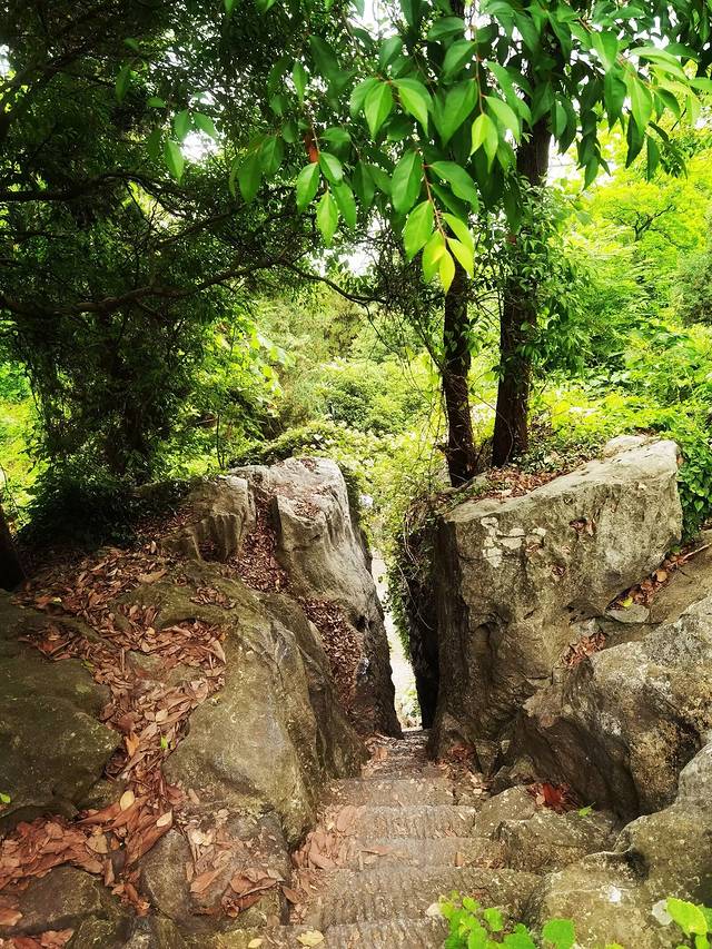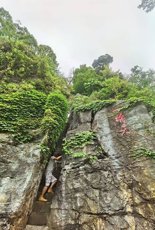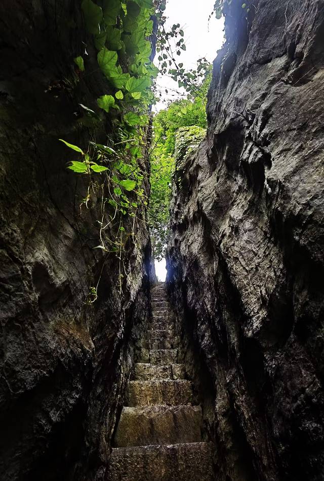 2、一线天。1亿年前,地壳运动使地层产生了断裂,形成了一线天的地貌,石公山的一线天就是这样而来的。石公山的一线天,直接通往山顶,石缝非常狭窄,仅能容纳一人通行,尽管很短,只有53级台阶,但很陡峭,感觉坡度快要接近80°了!有啤酒肚的非常有可能要卡在中间的最窄处,千万谨慎!这个一线天有个好听的别名“风弄穿云涧”,崖壁上的“一线天”三字为苏州著名书画家谢孝思手书。明代沈伯英在《一线天》的诗中写道:“须臾盘折出木杪,如晦而卧日方晓。人生休歌引路难,历尽崎岖见坦道。”