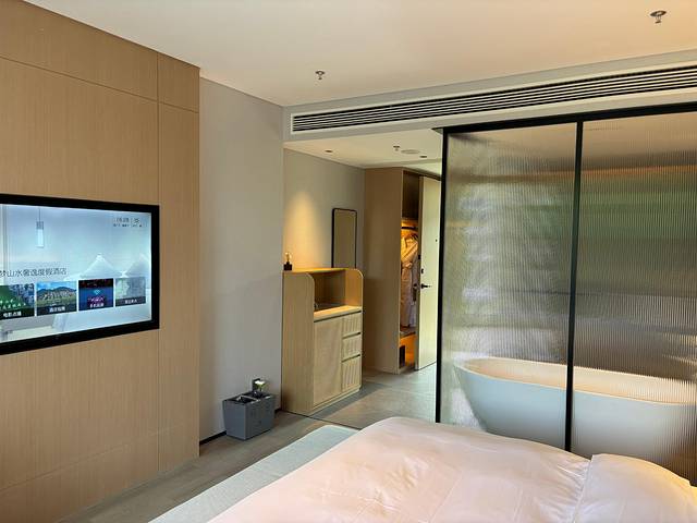 安吉梦山水奢逸度假酒店,周末822元/间,2024年7月刚开业,阳台很大,离镇也不远,开车10分钟左右,环境很OK,楼下有钓鱼,皮划艇,竹伐,就是新开业房间有些味道,其他都很不错。尤其是酒店的无边泳池,小朋友最喜欢,在民宿和酒店间选择了这里。