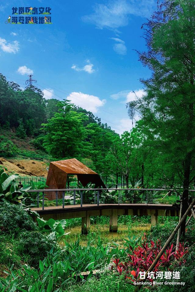入园后可以沿着甘坑-苗坑水库碧道跑步、骑行(非共享单车)、徒步,享受山水惬意。