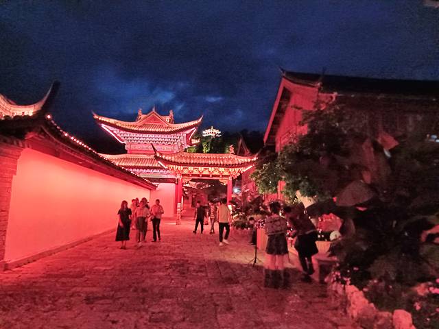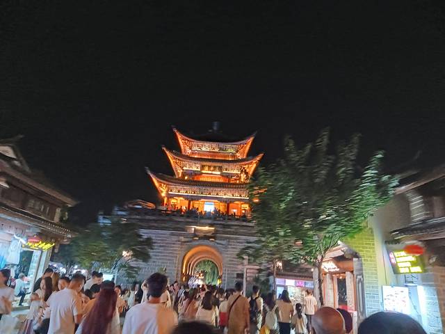 拉市海坐车回古城10/人晚歺后去的古城,人太多了 在四方街有表演拍了视频,人多到人济人