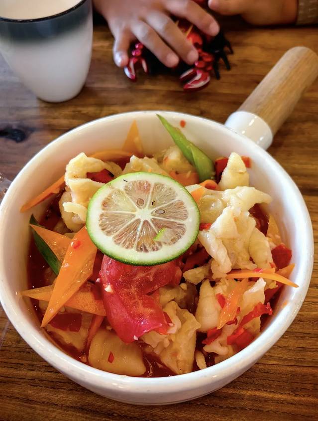 在束河古镇,遇到好餐厅喽,环境特别好,进门就有一个歌手驻唱,都是很文艺的民谣,听的人心灵很放松!到处都是花,带娃来玩特别开心,服务员很热情,服务态度很好,云南真的太适合拍拍拍了,下次还来,位置挺好找的,束河古镇没有大研古城那么多人,到处都可以找到幽静的拍照打卡地!云南的菜我都挺喜欢吃的,特别是偏傣味的!