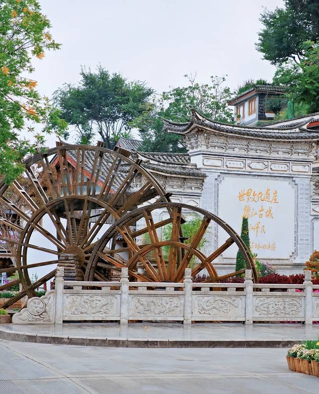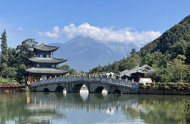 Day2 上午睡到自然醒,去黑龙潭公园看玉龙雪山远景(早点到可以看日照金山)。湖边喝个咖啡,看看美景,非常舒服。中午回酒店休息和洗澡。下午四点左右继续逛丽江古城,打卡木府、大水车等。