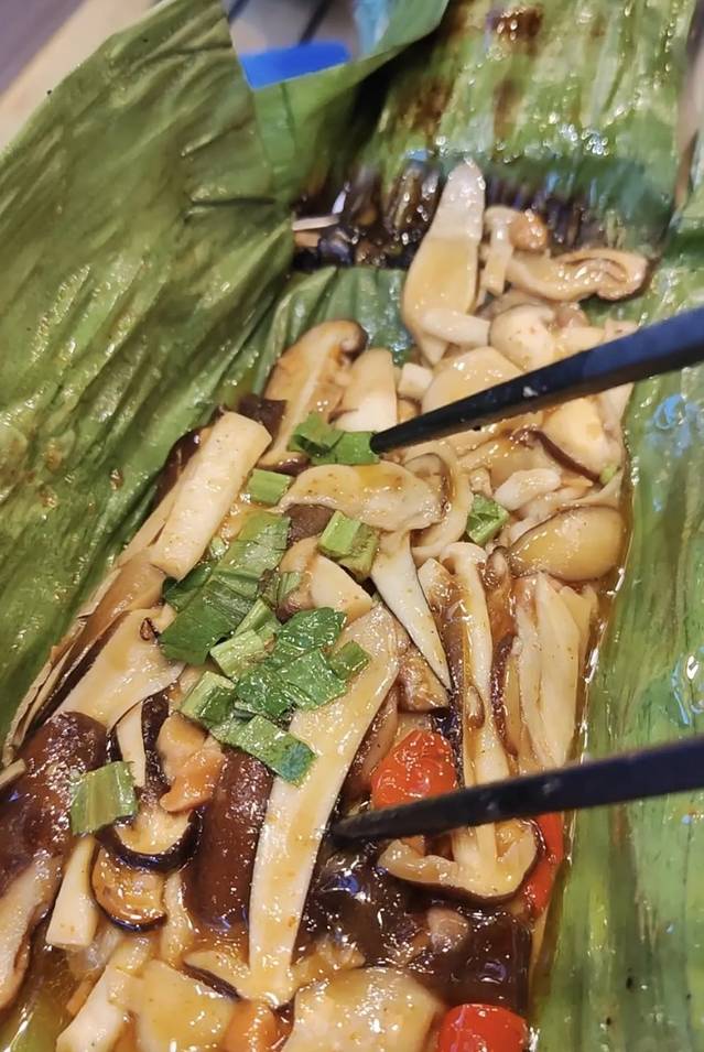 傣式烤菌菇虽然有汁水也挺鲜,对我这种连着几天顿顿野生菌菇的舌头来说,已经没感觉了。