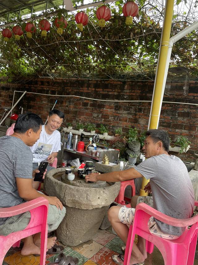 早饭过后,大人们实在不想动了,都在院子里喝茶葛优躺,老板有个自己打造的茶台,喜欢喝茶的老公和其它客人跟老板一起喝茶聊天,他觉得好舒服。