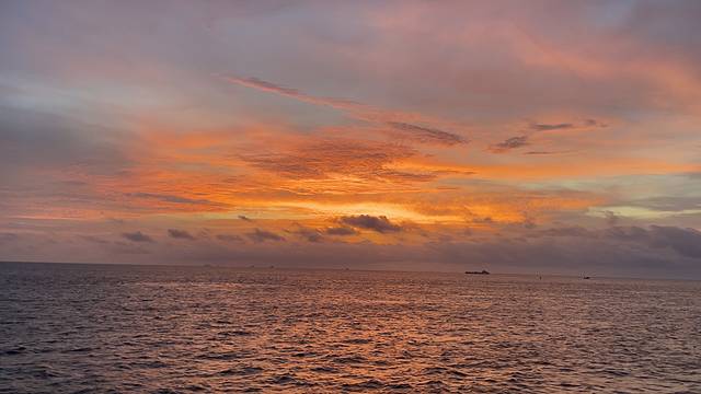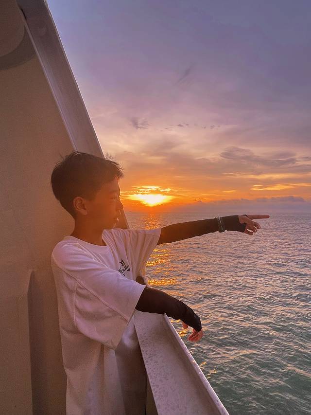 也许是老天眷顾,之前还是阴天大雨,逐渐的雨过天晴了,等船行程在海面是,如愿看到了无比美丽晚霞。