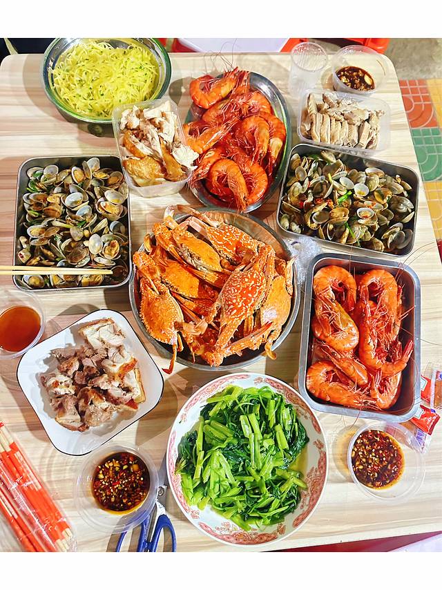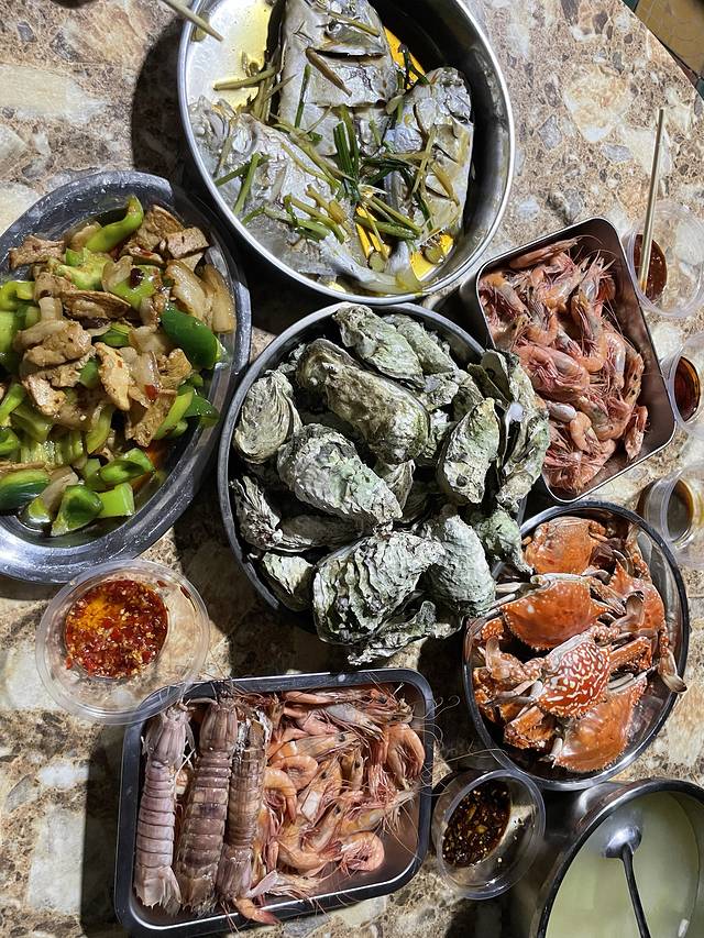 午饭没吃好,晚饭可不能将就,但是今天好像没遇到渔船回港,海鲜不是很多,也没有特别便宜,不过我们还是买了好多。