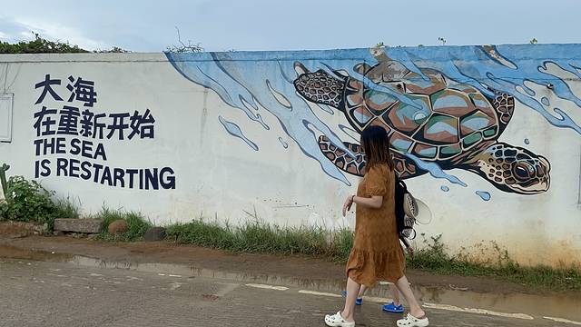 继续沿着海边去往相对成熟的放坡村,这边有很多民宿,但是整体给人的感觉还是有点乱糟糟的,海边的垃圾也多,到这边的人都不是很多,也没有几家咖啡厅那种,原本想找个舒适的地方喝喝水,吹吹海风,奈何一直没看到,随便逛了逛村里找了家饭馆吃饭。