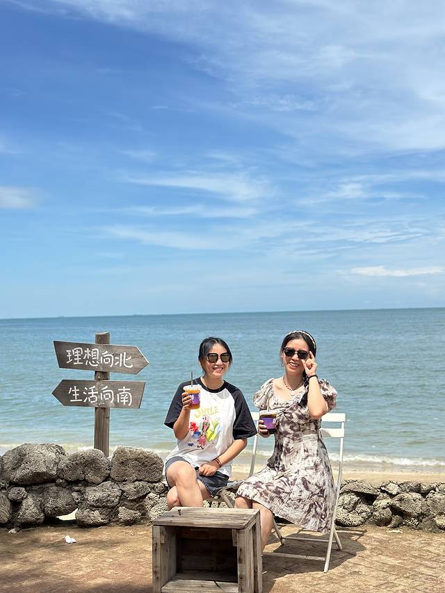 车开到这边,不仅没有雨,还稍微有点太阳,可以海水看着不是特别蓝,可能天气原因也占了大部分吧!