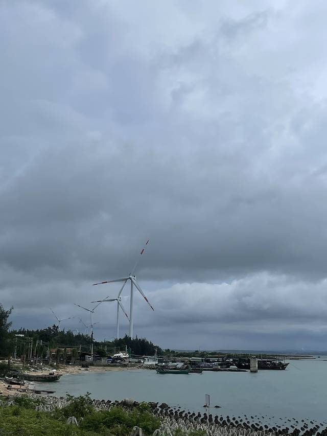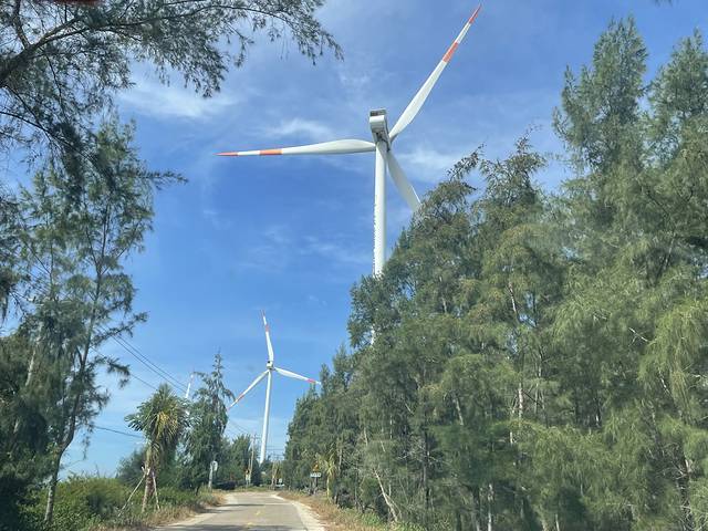 来都来了,当然还是不能一直发呆,收拾一下,出发去看大陆最南端的灯塔喽!从老板家开车过去几公里,一直沿着海岸线开,无数的动力打电风车还有盐田。