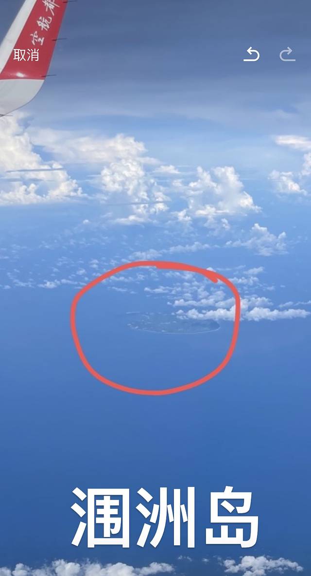 跨越琼州海峡的时候,在飞机上清楚的看到了涠洲岛。