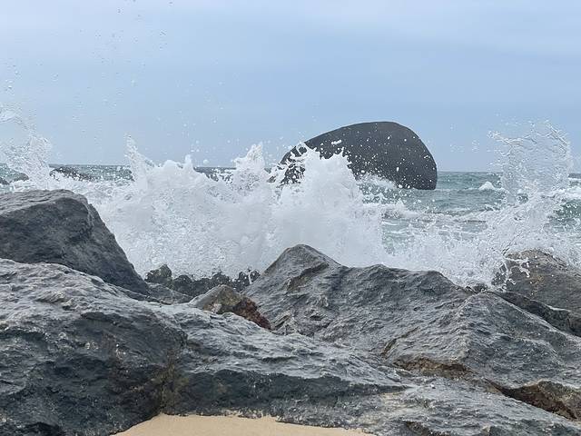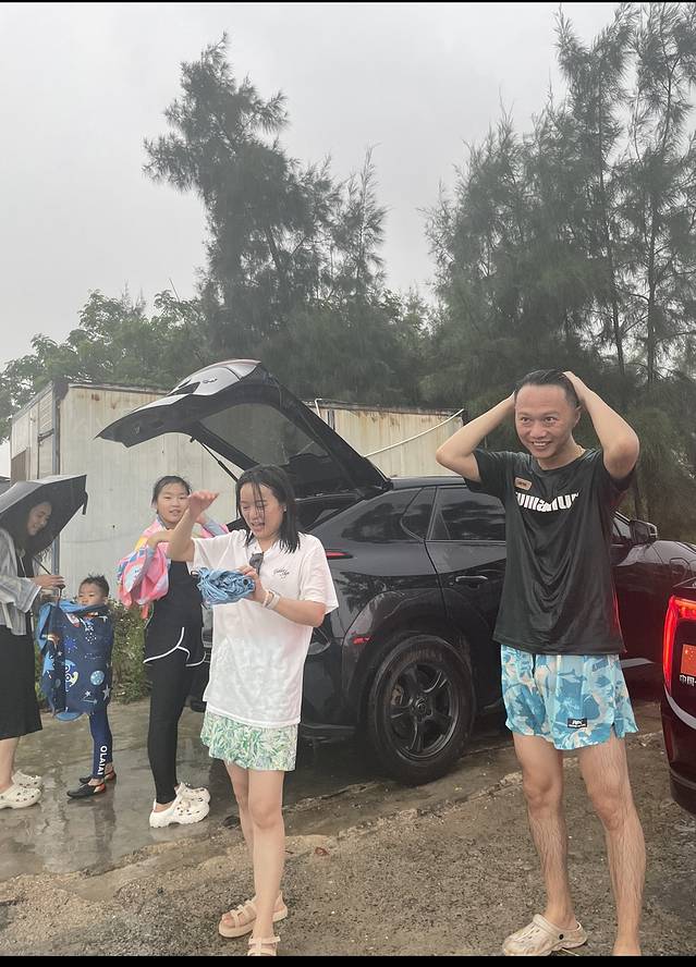 30分后我回来了,头顶一片乌云也快来了,暴雨⛈即将来袭。果然,我刚走回海边,雨来了哈哈哈,海边一群人疯狂的向岸边跑。然而,我刚说了,海边没有商户,也就意味着无处躲雨哈哈😃。这遥远的600米上坡路,外加倾盆大雨才酸爽哦!人生淋的第一场暴雨⛈