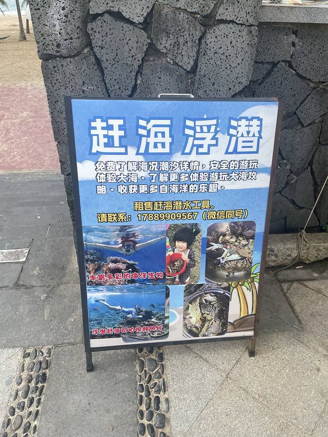 早早地来到海滩,这个海滩超级推荐。海水清澈蔚蓝,沙子柔软细腻,有许多大的石头,中间围起来很多浅滩,戴上泳镜就可以浮潜了,真的有好多好多鱼🐟,石头上全是晒太阳的螃蟹🦀。好吧!我儿又让我去买网了。不过这次就不错,海边就有商贩,我不用走遥远的路程了。
