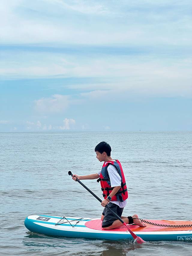 100块钱一搜桨板可以玩一下午,两爷子估计玩了半个多小时就放弃了,说太晕,体验过也不错。