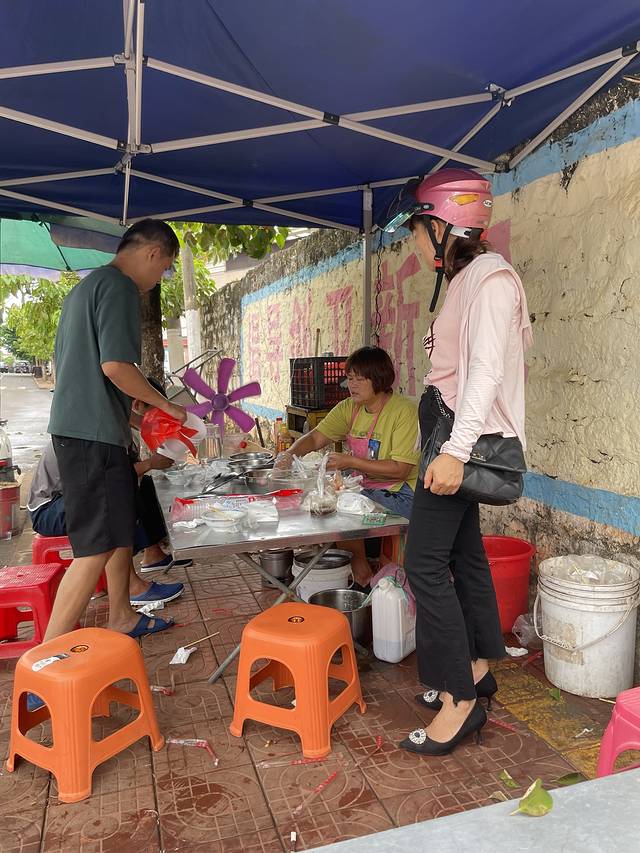 老板推荐的中学门口摆地摊的粉店,果然生意好的很,我和老公现场嗦了两碗后给他们打包。