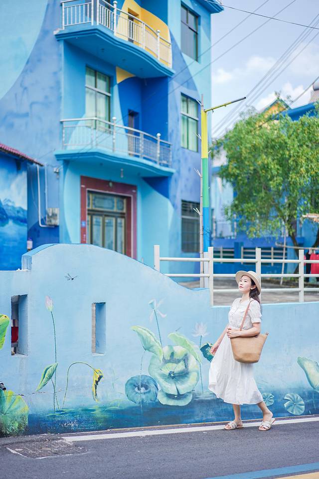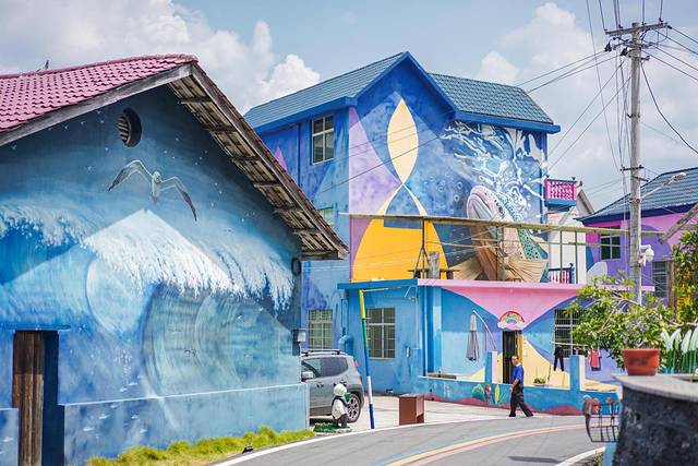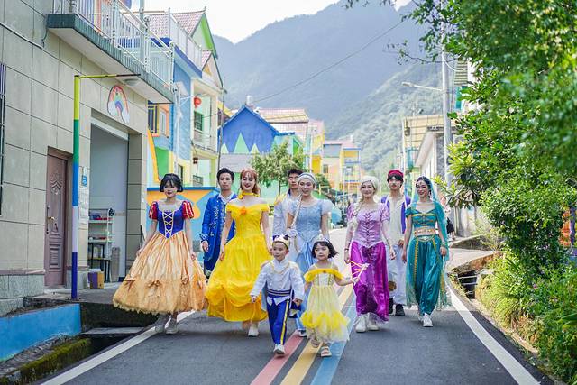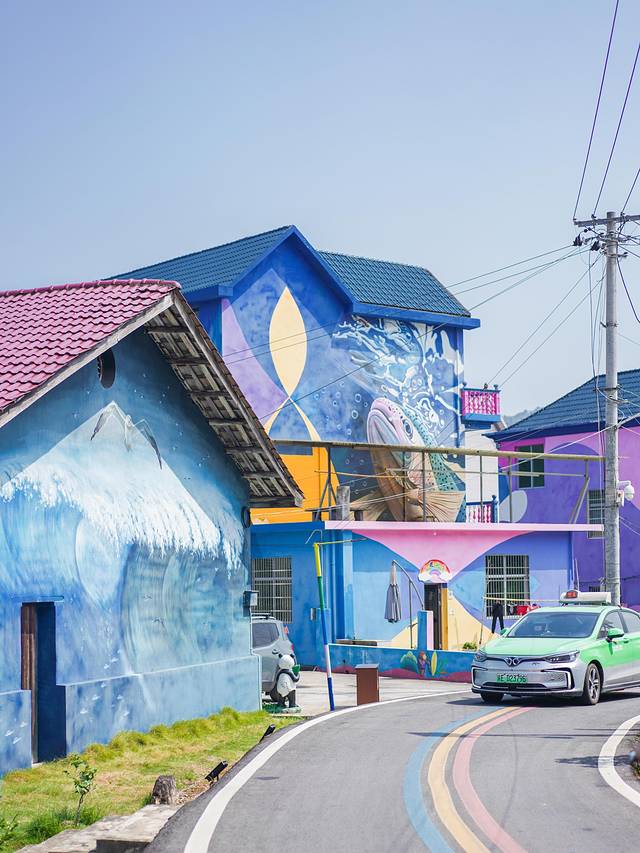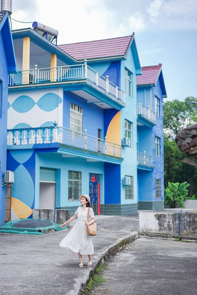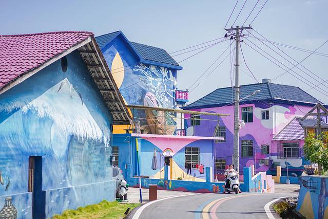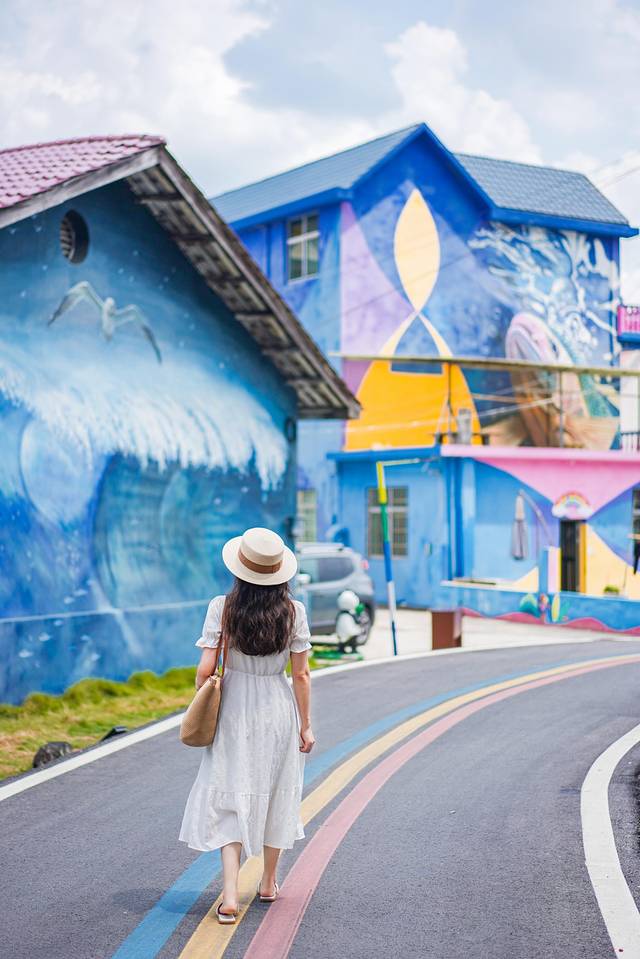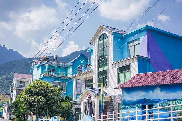 第一站,我们来到大茅山的童话村。这里宛如一个童话世界,五颜六色的房子加上各种涂鸦,在蓝天白云的映衬下,太好看了!