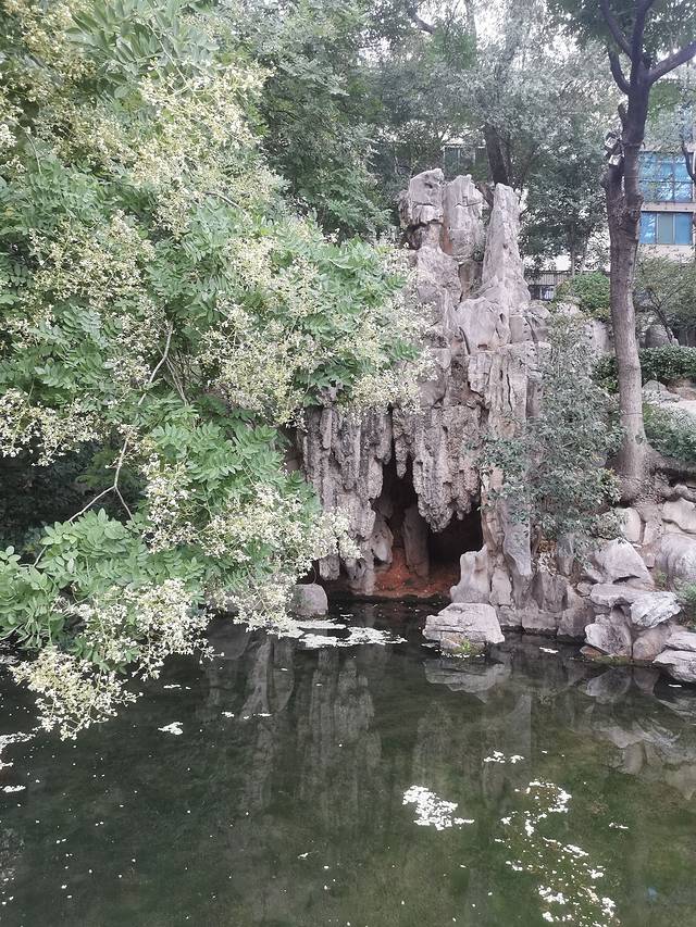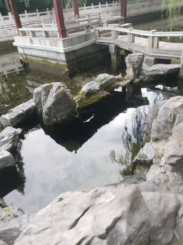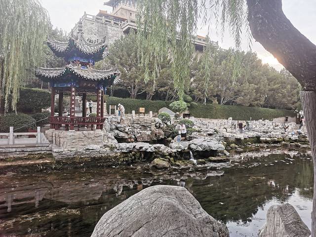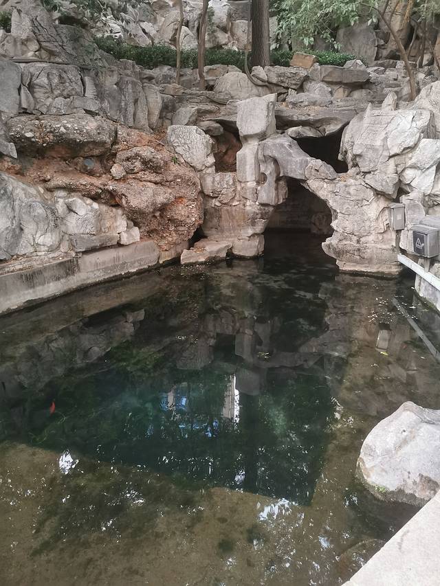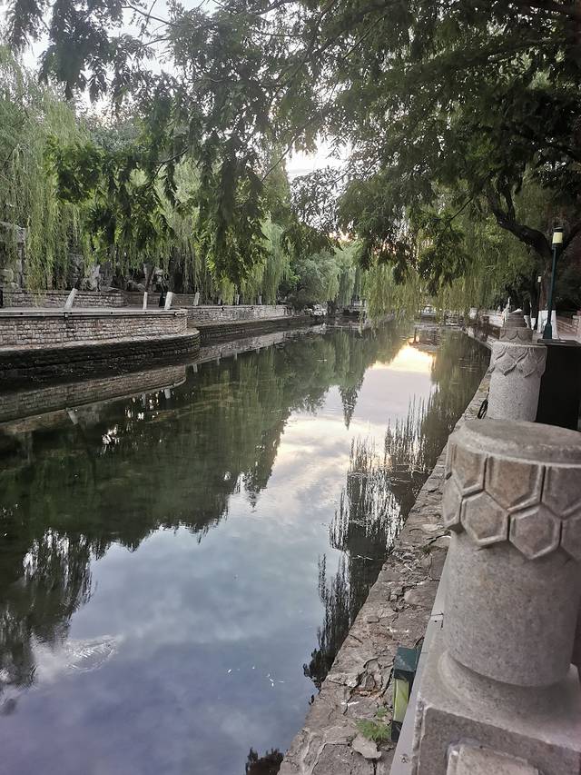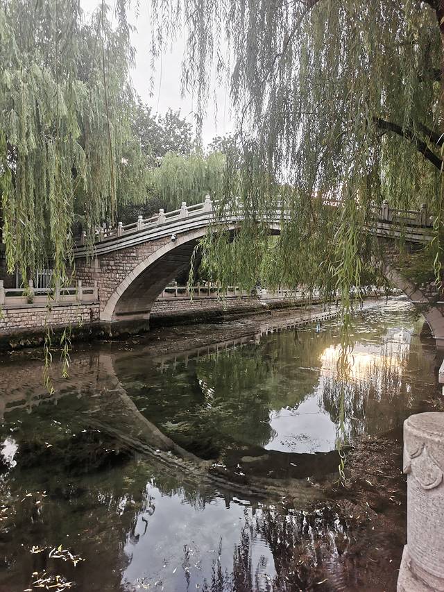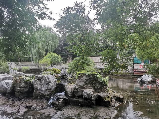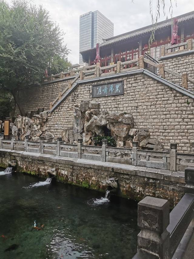 一系列泉眼,依次是胤嗣泉,一虎泉,五莲泉,琵琶泉,黑虎泉,玛瑙泉。过白石桥,河对面是白石泉,九女泉,九女亭。许多人提了桶接泉水。