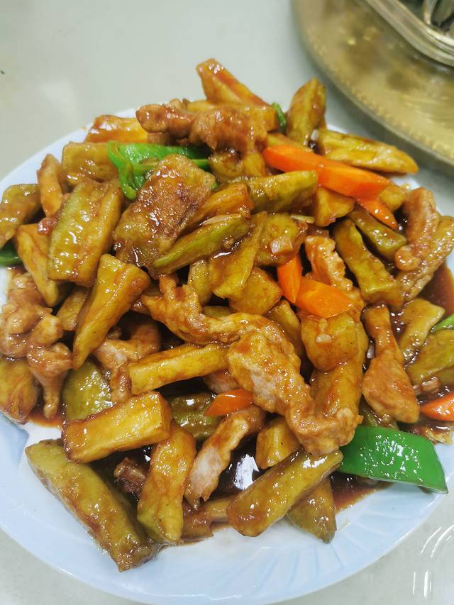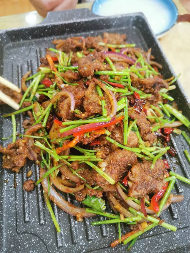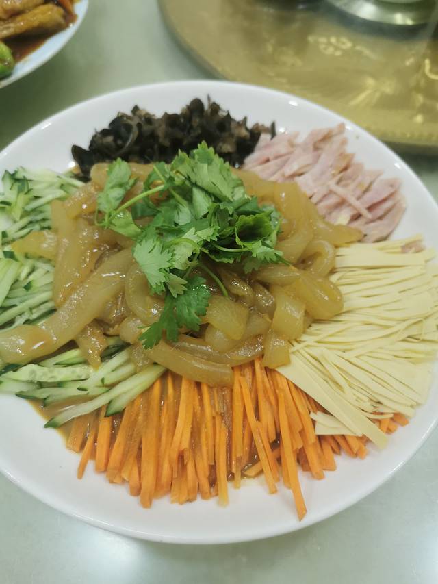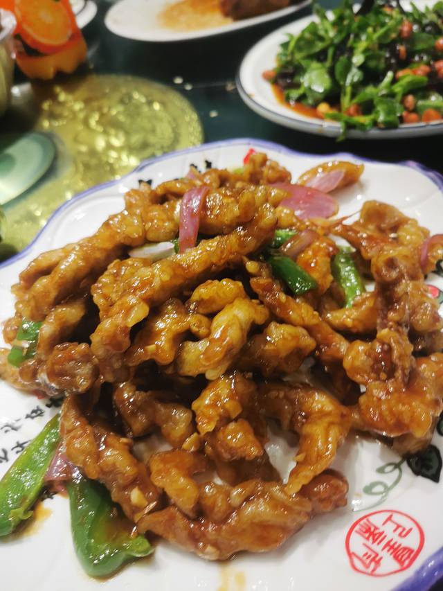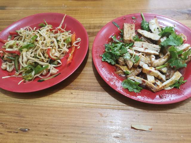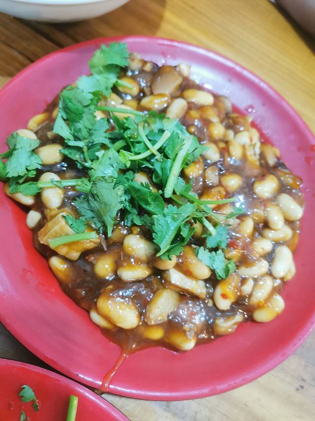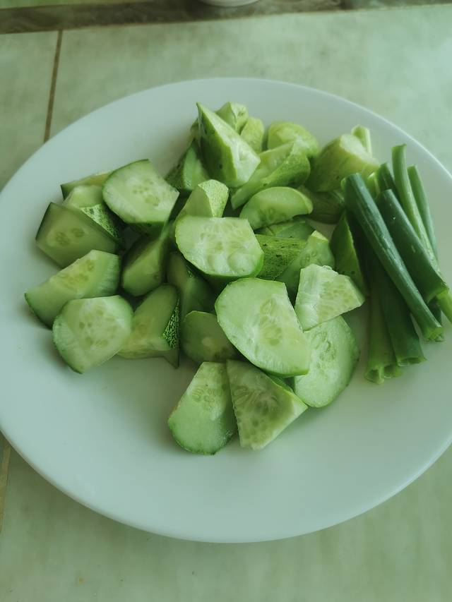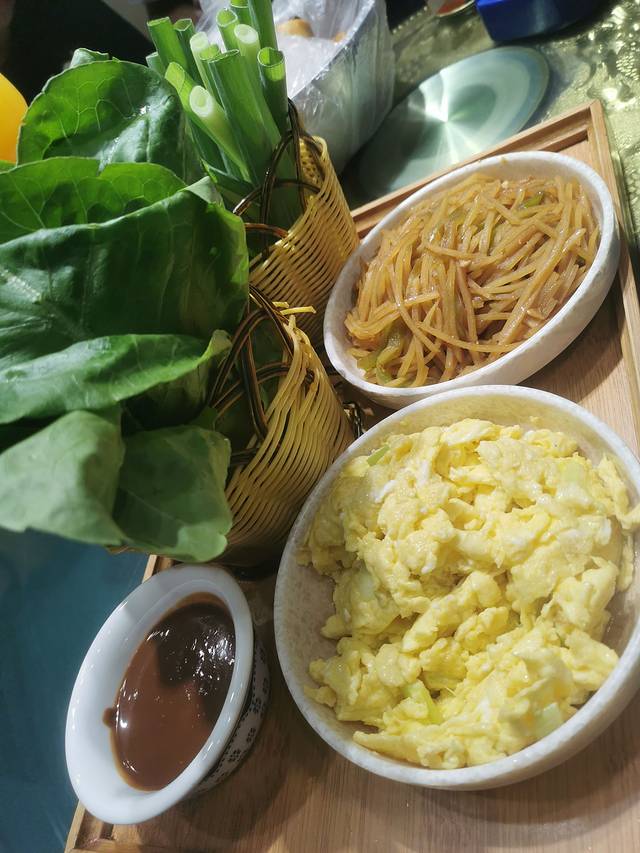 老板娘送的一盘自家种的黄瓜小葱,配的自制大酱。