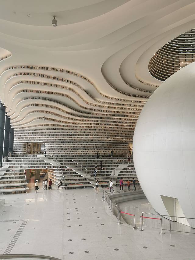滨海图书馆中心馆,图书馆一楼都是拍照打卡的人。三楼以上是阅览室,每个阅览室都小小的,一间一间的,书籍放置没规律,书架标识不够清晰。