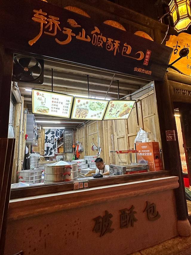 安顺破酥包是安顺一道特色的小吃,安顺人会把它作为早餐来食用。安顺破酥包以松软、馅心细嫩、味咸鲜香著称。虽然个头小小,但不同馅料,使得每一种口味的破酥包都有不同的味道。在安顺,最受欢迎的馅料分别是鲜肉葱花包和三鲜包。安顺破酥包最大的特点是层次分明,口感丰富,所以,“破酥”这道工序极为重要。有经验的老师傅都会选择用老面发酵,然后再加上一点生面,用适中的力道将其揉匀,捂上一小时左右后,再扯成薄皮。