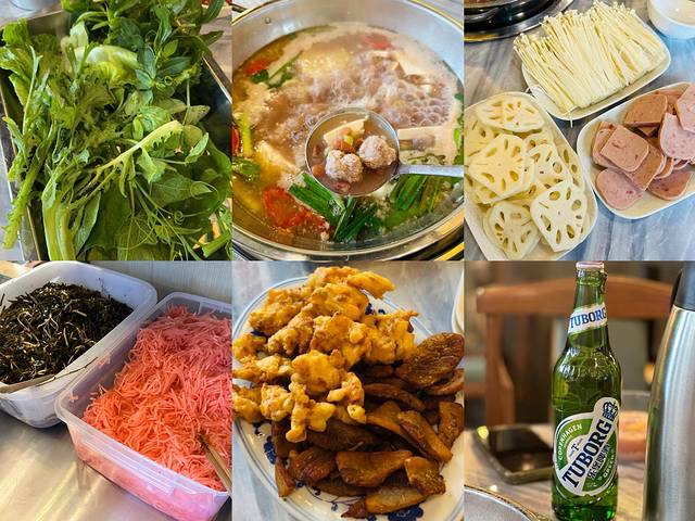 食用蔬菜(如莲花白、芹菜等)适量,肉类(猪肉、牛肉、鸡肉、鱼肉等)适量、各肉类半成品,土豆、臭豆腐、碱豆腐、魔芋豆腐等等。
